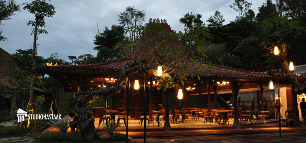 | Desain Pencahayaan Eksterior | Tata cahaya untuk taman, fasad gedung, resort. | Villa Jendela Roemah Kita |